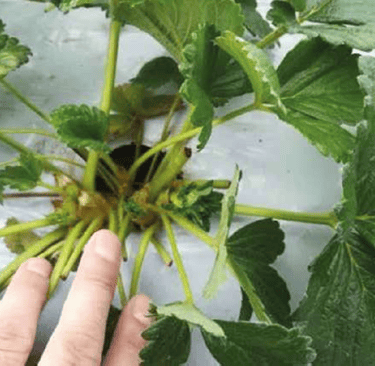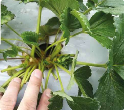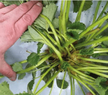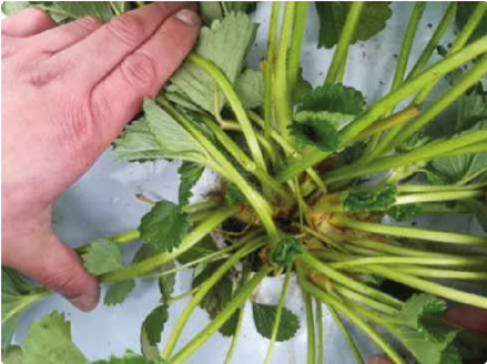 Detalle de las plantas de fresa de testigo. Con el menor número de coronas 2,1 por planta, 35 ton/ha